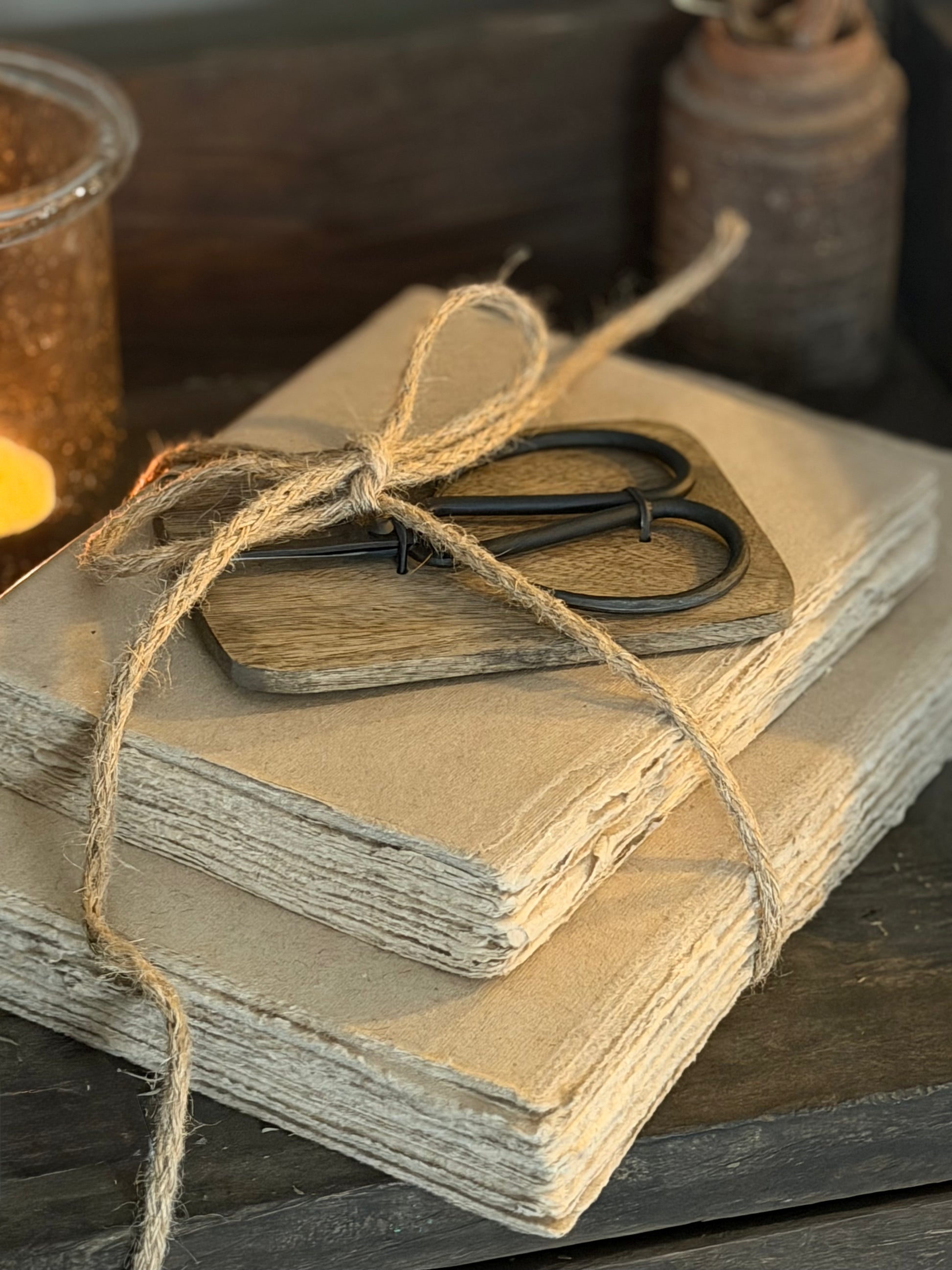 Dit decoratieve notebook van Aura Peeperkorn heeft een authentieke, sobere uitstraling. Het schrift is met touw gebonden en bestaat uit naturelkleurig papier met geraffelde randen, wat zorgt voor een handgemaakt en doorleefd effect. Een stijlvol item dat perfect past binnen een landelijk of sober interieur.