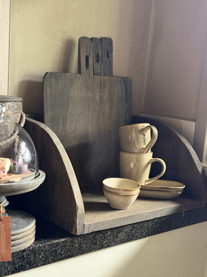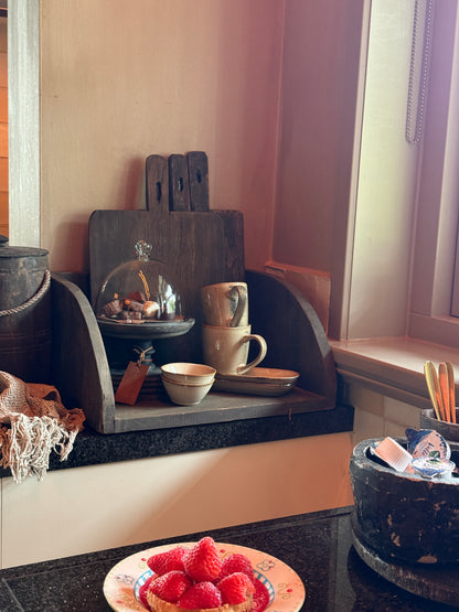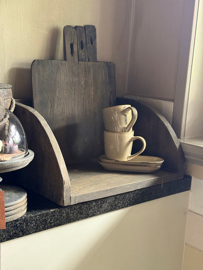 Voeg een vleugje karakter en warmte toe aan je keuken met deze open gruttersbak, vervaardigd van driftwood hout. Het verweerde hout, met zijn unieke structuur en natuurlijke kleurschakeringen, geeft dit decoratiestuk een authentieke, rustieke uitstraling. Perfect voor een landelijke of brocante keuken.