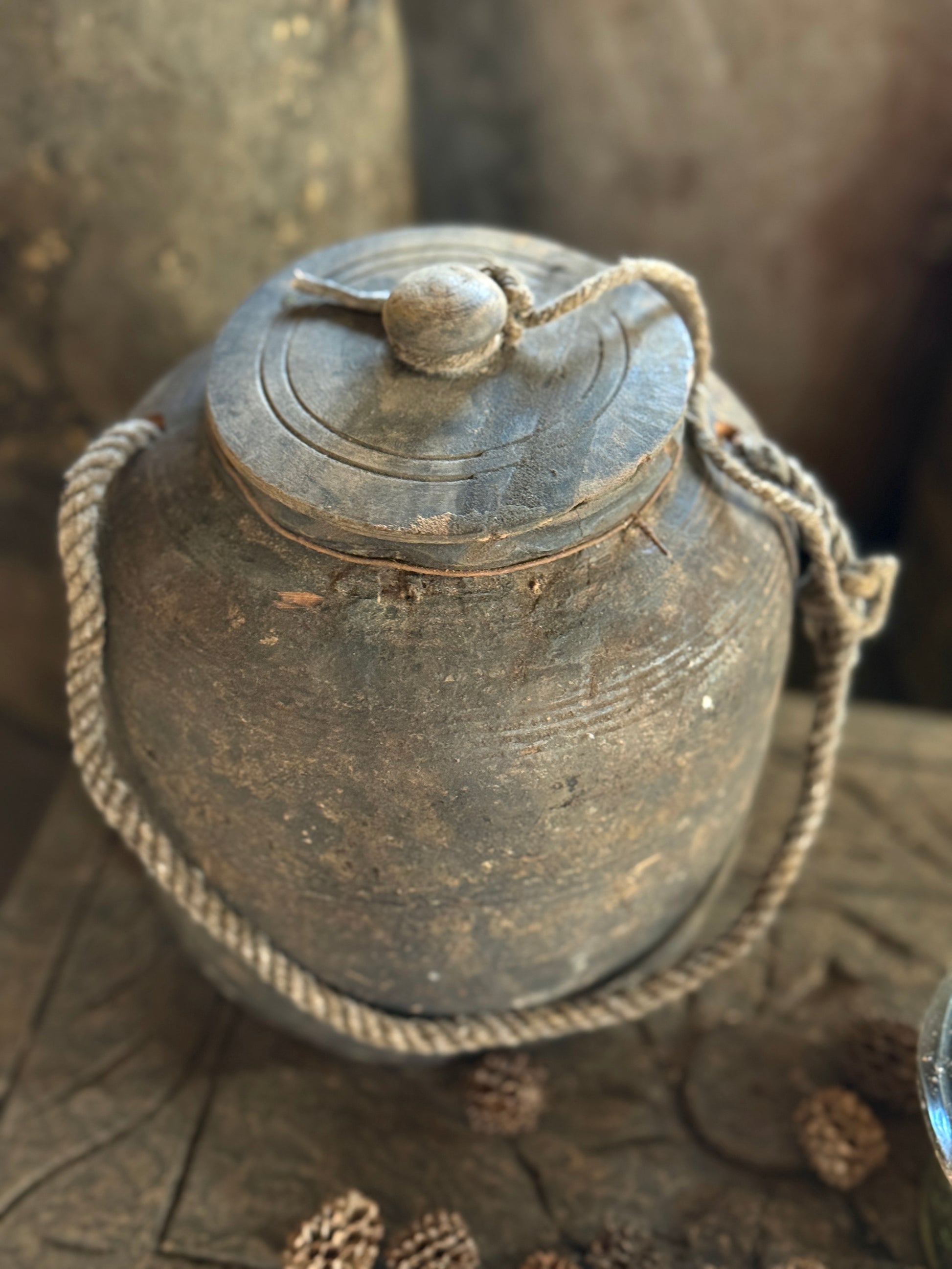 Oud Nepalees Potje met Deksel – Sfeervolle Eyecatcher