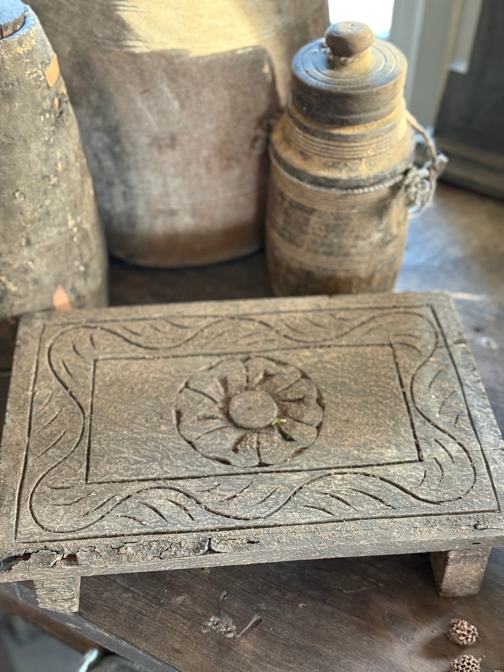 Oude Bajot Plank met Houtsnijwerk – Uniek & Decoratief