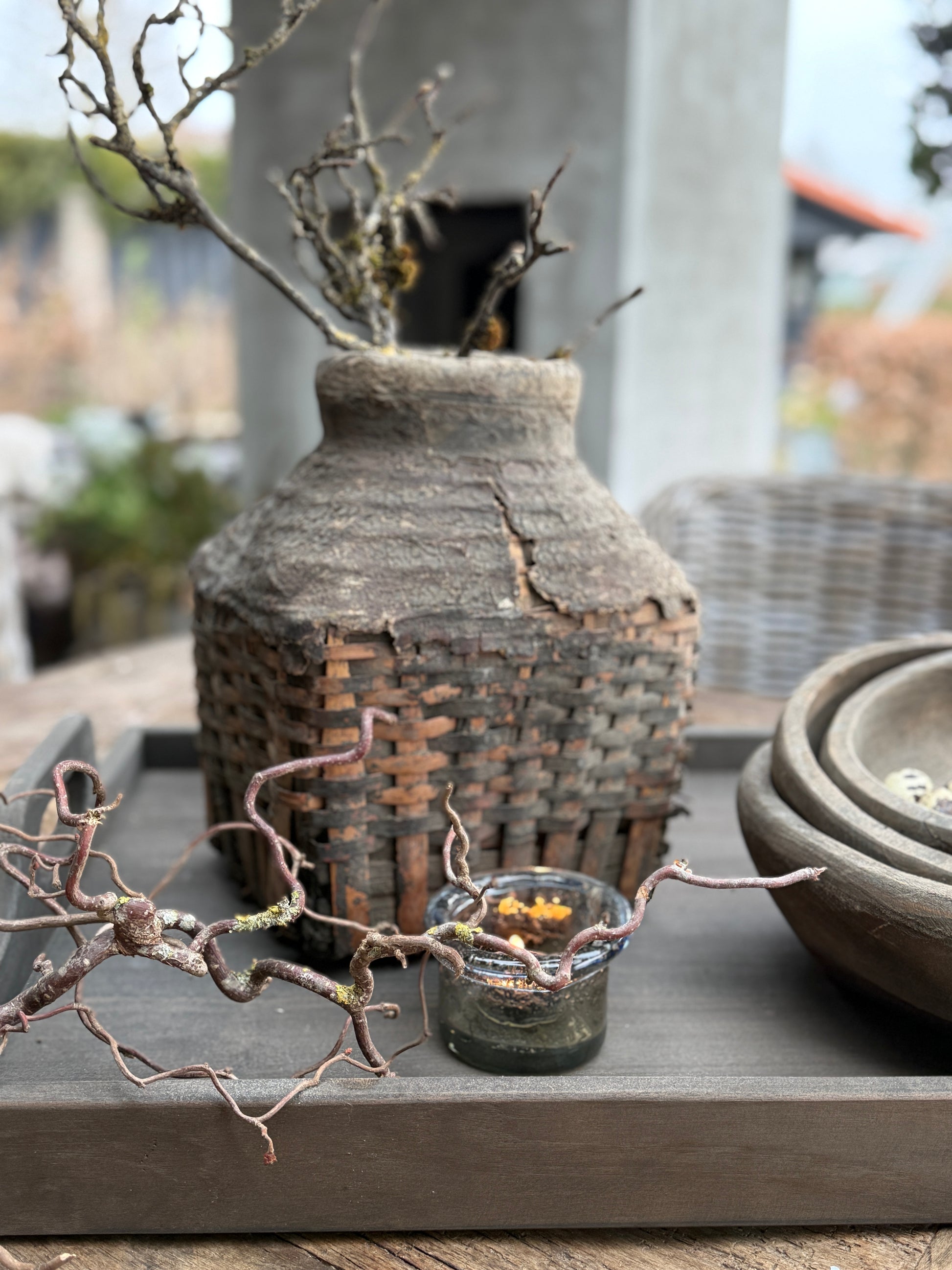 De mand heeft een stoere en sfeervolle uitstraling en past perfect binnen een landelijk, sober of robuust interieur. Prachtig als decoratief item op een vensterbank, sidetable of kast, zowel op zichzelf als gecombineerd met andere natuurlijke materialen.