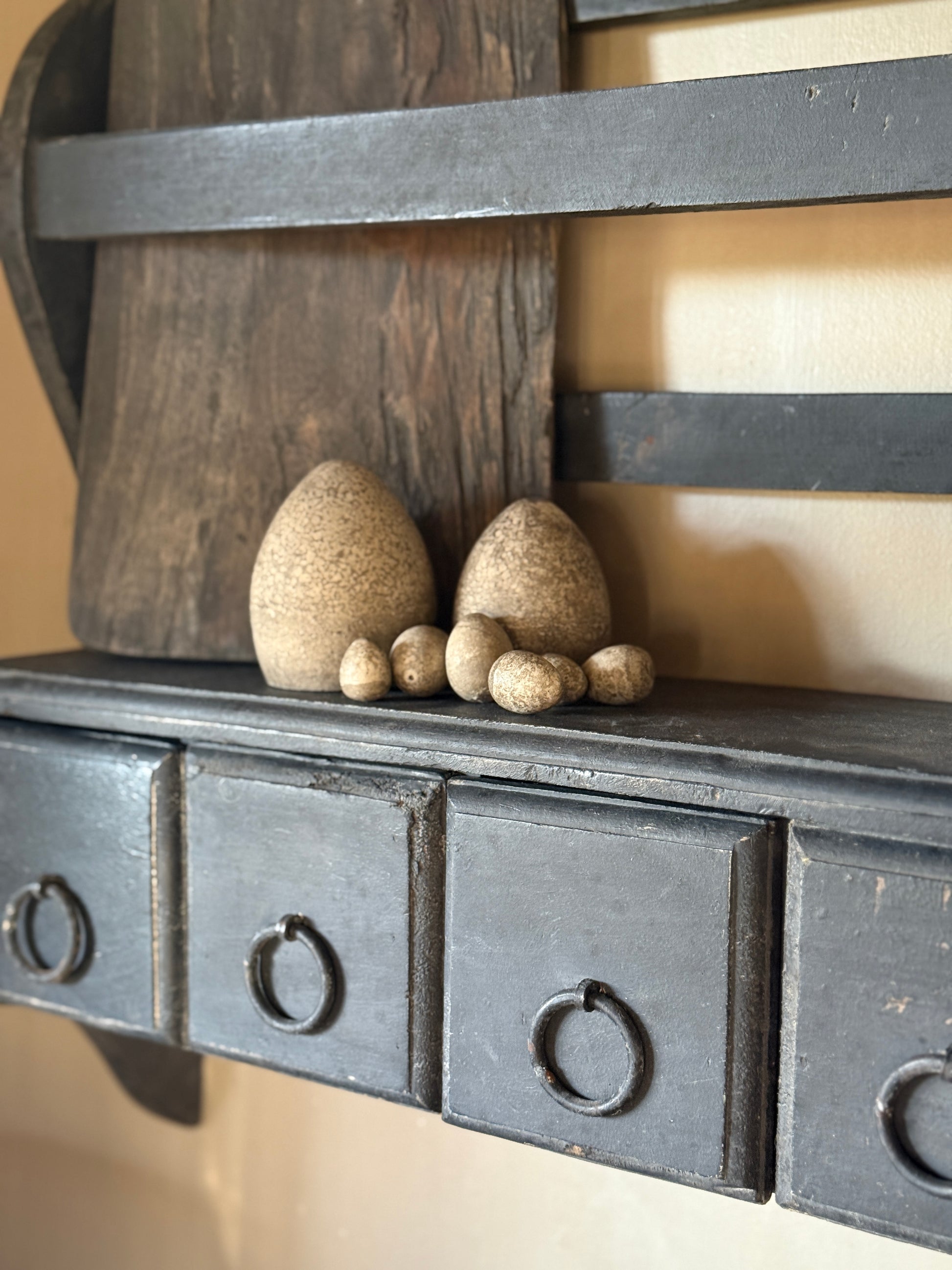 De set bestaat uit drie verschillende maten1 cm, 2 cm en 3 cm – wat zorgt voor een speels en rustig geheel. Mooi om te decoreren in een wortelnest, onder een stolpje of op een schaal als subtiel voorjaarsaccent.
