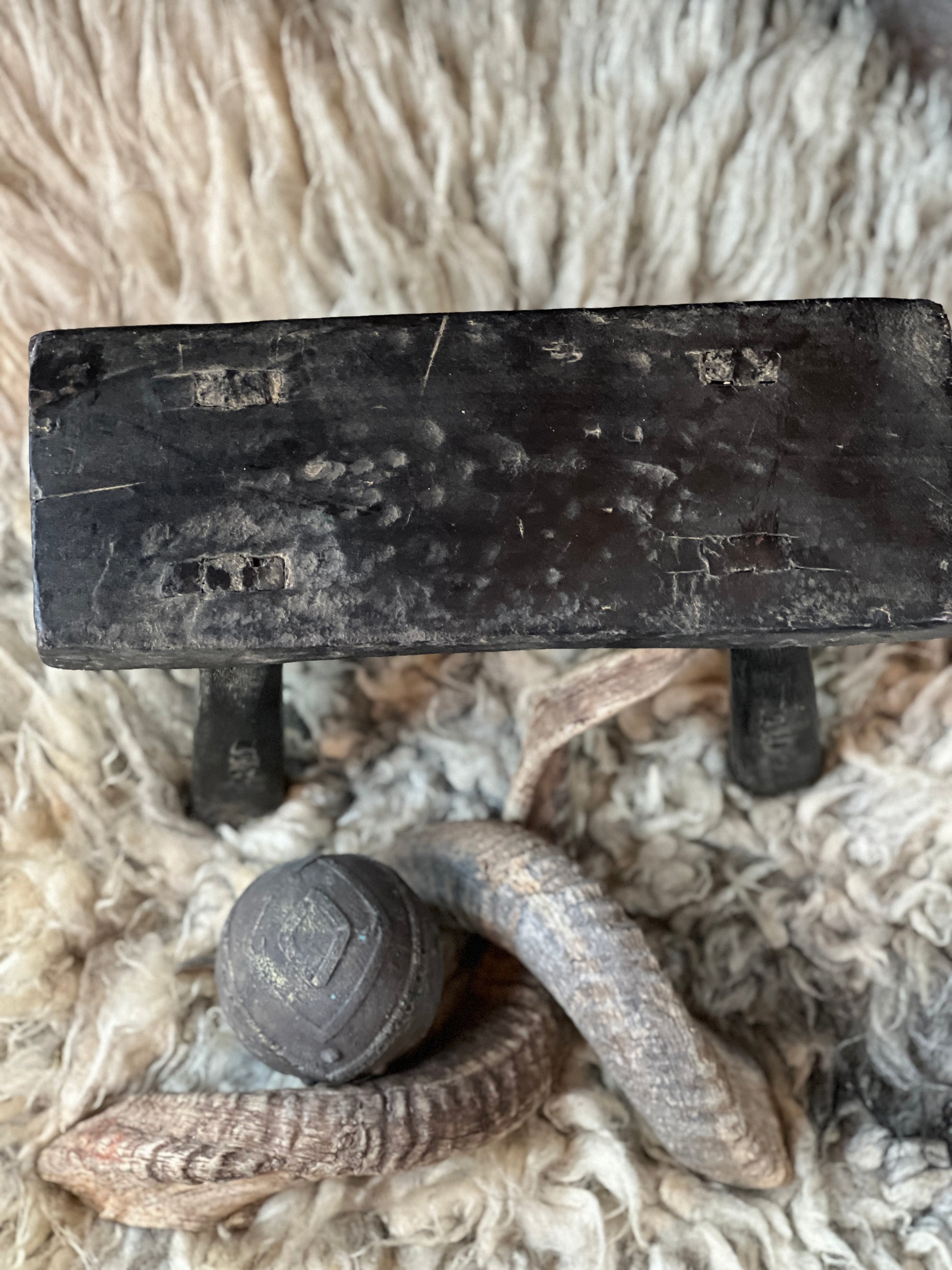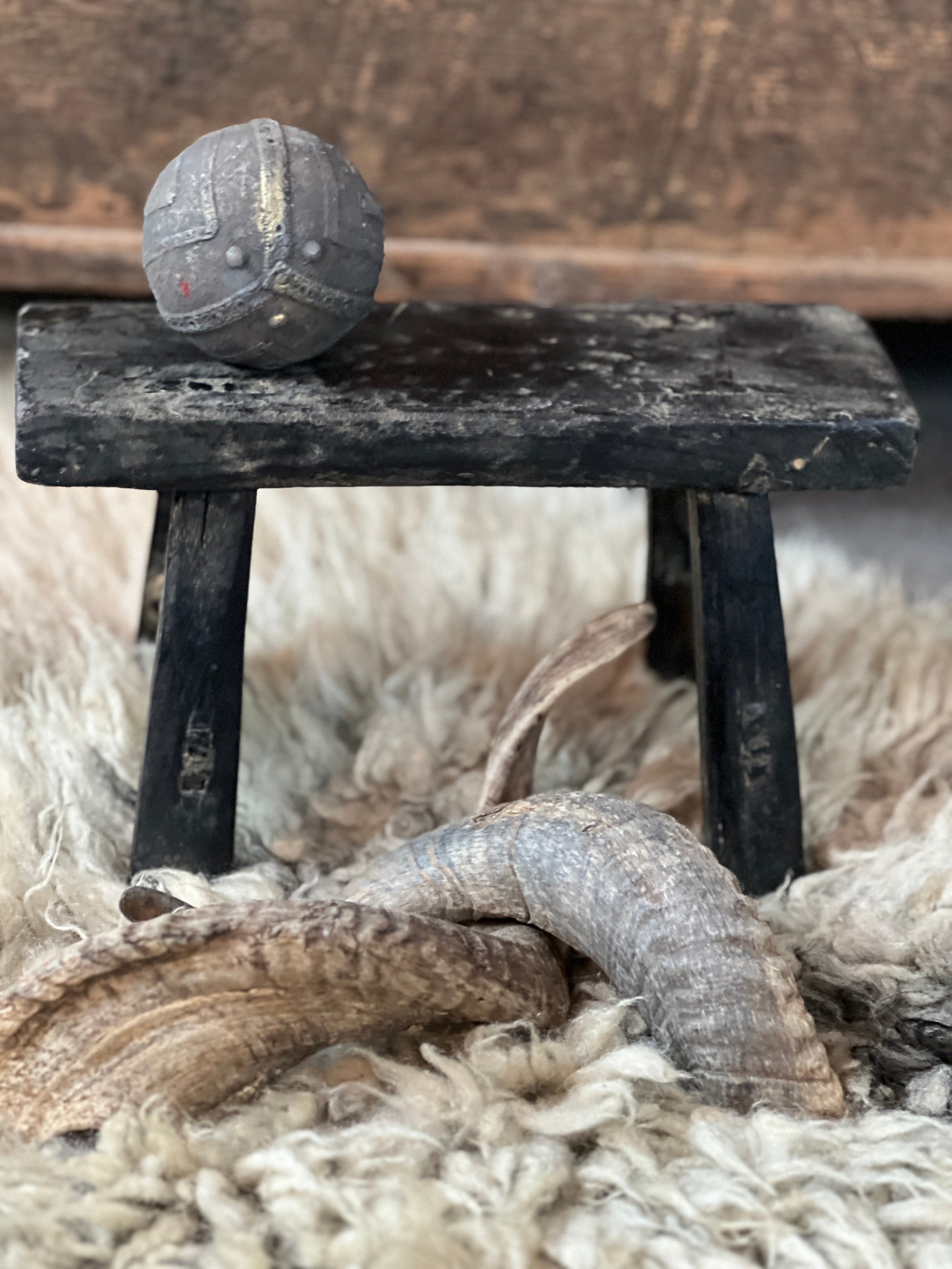 Een mooi klein oud vensterbank krukje. past al snel op een smalle vensterbank.